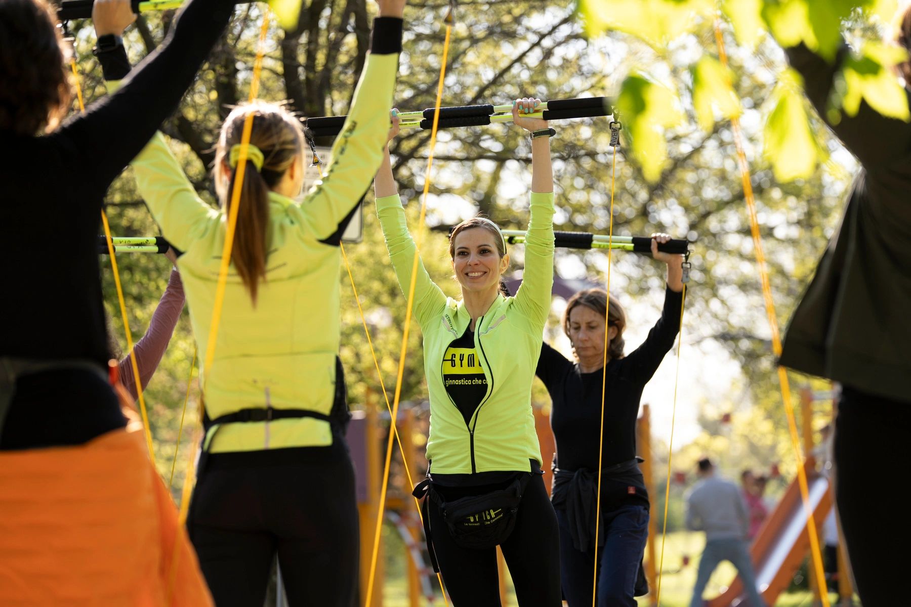 Da lì, lo scambio di idee è stato fulmineo. "Esatto! È il momento di spingerci oltre," abbiamo pensato. "Non solo usarli per GYMCA La Ginnastica Che Cammina®, ma esplorare ogni possibilità: sono strumenti multifunzionali, come possiamo sfruttarli ancora meglio? Portiamoli al chiuso, inventiamo un nuovo modo di allenarci con loro!"